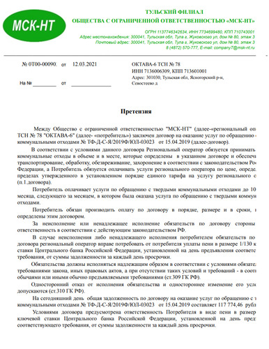 Предлагаю ознакомиться с информацией о состоянии взаиморасчётов с МСК-НТ.